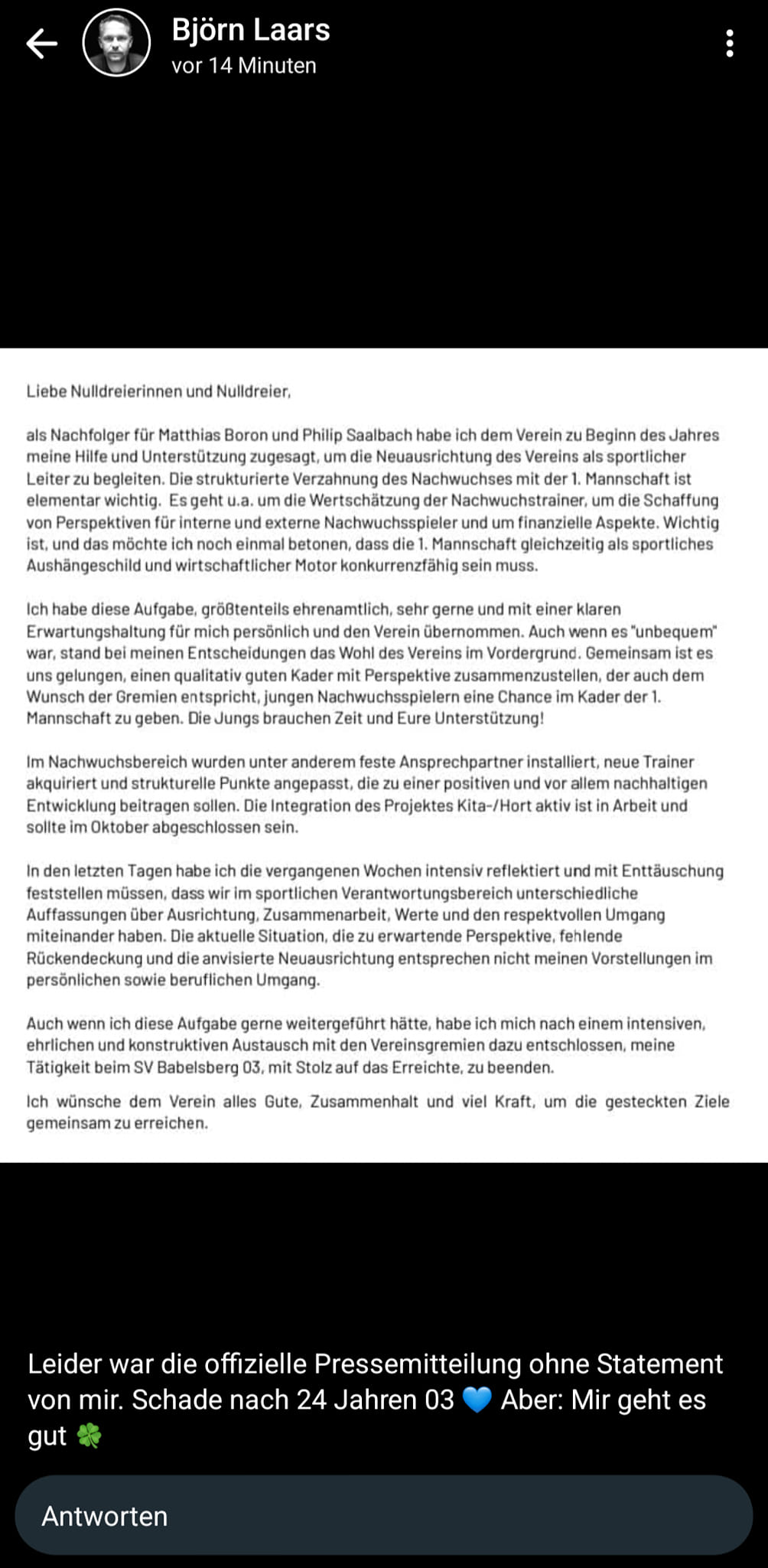 "Das neue Team wird neben André Meyer, Cheftrainer der 1. Mannschaft, und Paul Bachmeyer, Vorstand Sport, weitere Personen umfassen, die sich im Kern auch den Themen Nachwuchs, Talentförderung, sowie Struktur- und strategischen Aufgaben im gemeinsamen Austausch widmen. Weitere Details zur genauen Besetzung des Teams werden wir in der kommenden Woche bekanntgeben." (Quelle: Verein auf FB am 24.08.024)